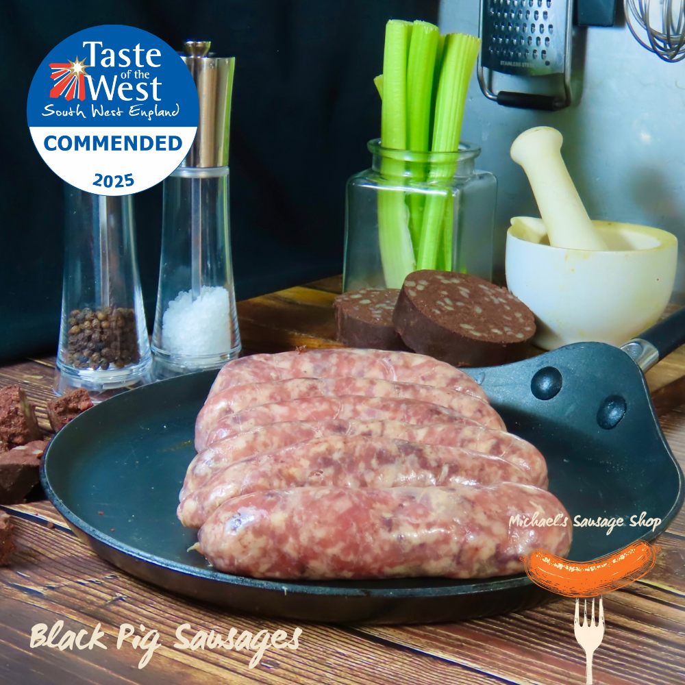 Experience the rich, savoury depths of our handmade pork and black pudding sausages, a bold and sophisticated take on a classic.